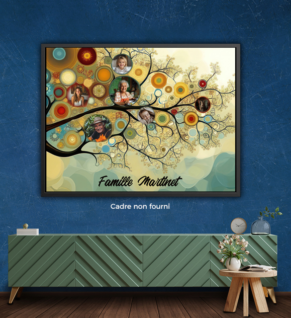 Le tableau personnalisé arbre branche et photos de famille possède une force émotionnelle unique. L’arbre représente stabilité et douceur graphique tandis que les photos apportent une dimension intime. La décoration murale devient alors vivante et expressive. La nature sert ici de support artistique à l’histoire familiale. Cette combinaison permet de créer un tableau décoratif touchant et élégant. Chaque regard posé dessus renvoie à des souvenirs positifs. Une œuvre pensée pour embellir, rassurer et personnaliser un espace intérieur.