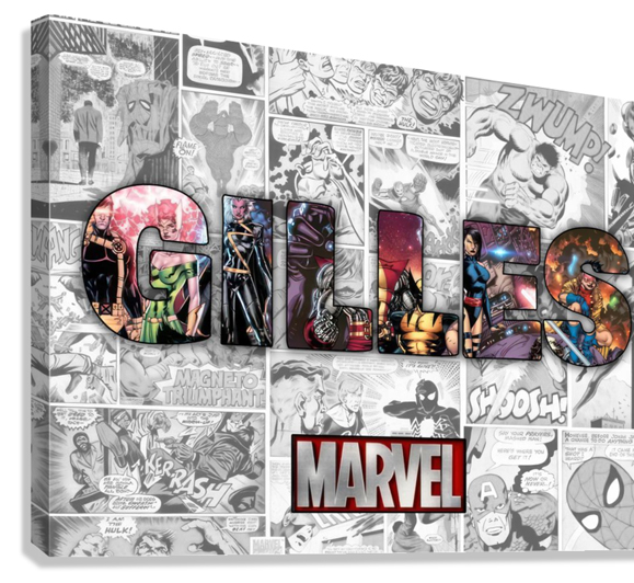 Marvel, comics, Movie, BD, tableau personnalisé prénoms, tableau style Marvel, décoration murale comics, tableau pop art Movie