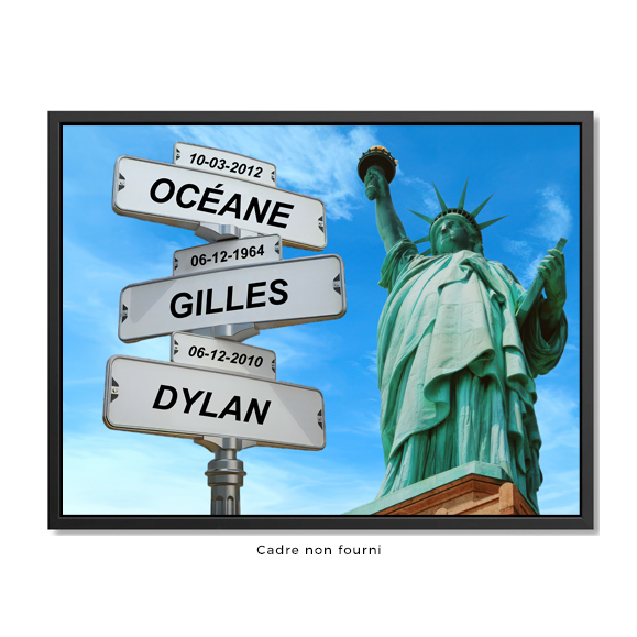 La présence de la Statue de la Liberté renforce l’identité du tableau. Ce repère visuel évoque immédiatement la ville de New York. La décoration murale s’appuie sur une référence connue. Les intersections rappellent l’organisation de la circulation. Les préoms de famille personnalisent l’ensemble. Le tableau gagne en cohérence graphique. Il attire naturellement l’attention. Le rendu reste équilibré. Cette création s’intègre à des intérieurs contemporains. Elle répond à une recherche décorative ciblée.