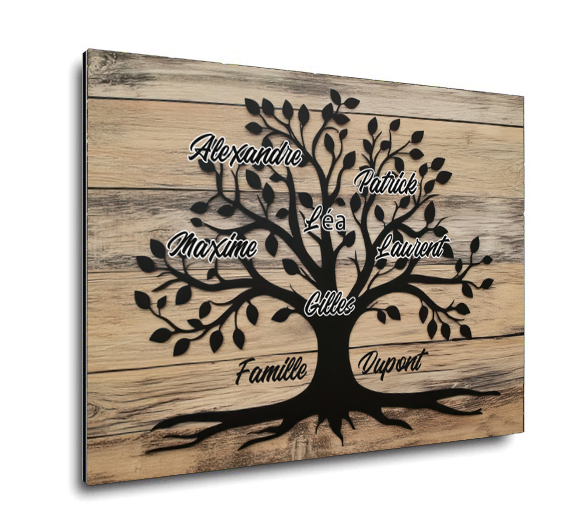 Le Tableau Personnalisé arbre de vie permet de représenter visuellement la cohésion familiale. Les prénoms de famille répartis sur les branches donnent une dimension humaine et chaleureuse. Cette œuvre devient rapidement une référence décorative centrale. L’arbre symbolise stabilité intérieure et force émotionnelle. Son design inspiré par la nature apporte douceur visuelle. Ce tableau classique valorise chaque espace avec élégance. Il transforme une décoration murale standard en véritable création artistique. Une pièce idéale pour une maison familiale souhaitant un décor personnalisé.