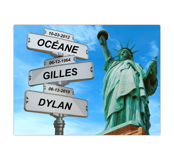 décoration murale, ville, circulation, préoms de famille, Statue de la Liberté, Tableau Personnalisé Panneau intersection New York
