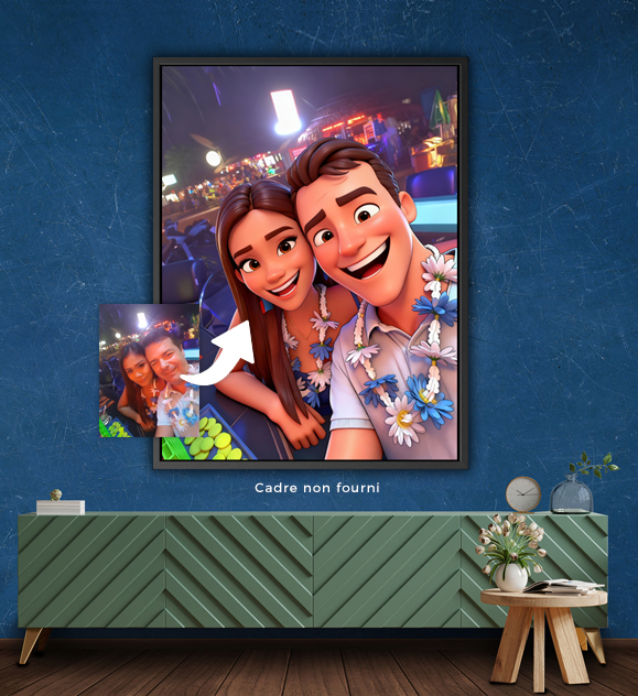 Le Tableau personnalisé style photo caricature transforme une image personnelle en œuvre décorative. Cette personnalisation enrichit la décoration murale. Le rendu caricatural met en avant les traits distinctifs. Dans un salon, le tableau attire l’attention. Chaque intérieur bénéficie d’un visuel unique. Le style emprunte des codes du pop art. Le street art apporte une touche urbaine. Le tableau reste équilibré. L’expression graphique est assumée. L’ensemble s’intègre facilement.