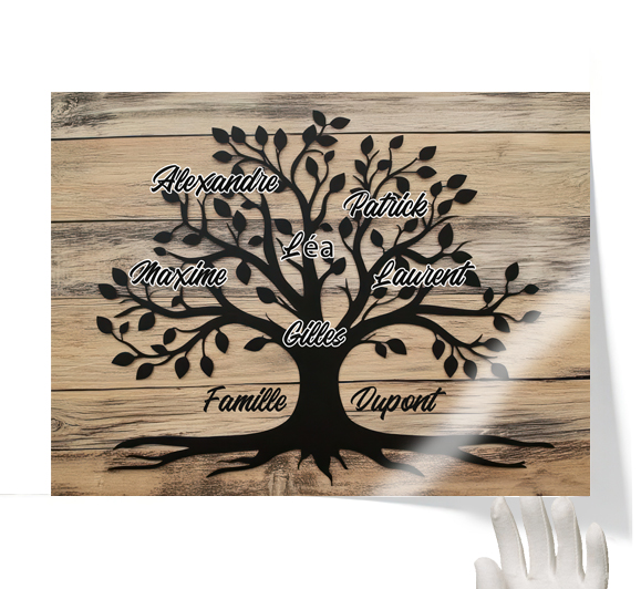 La grande particularité du Tableau Personnalisé arbre de vie réside dans la possibilité d’ajouter des prénoms de famille. Cette personnalisation donne une dimension émotionnelle forte et renforce la valeur décorative du tableau. L’intégration des prénoms crée un lien affectif solide entre l’œuvre et la famille. Cette approche apporte un caractère authentique et chaleureux à la décoration murale. Chaque branche de l’arbre peut recevoir un prénom, ce qui rend la composition unique. Le rendu final devient un tableau classique chargé d’émotion positive. Cet ajout permet de transformer une simple décoration en souvenir personnel durable. La personnalisation offre plus que de l’esthétique, elle crée une présence familière au sein de la maison. Une véritable œuvre de nature décorative liée à la famille.