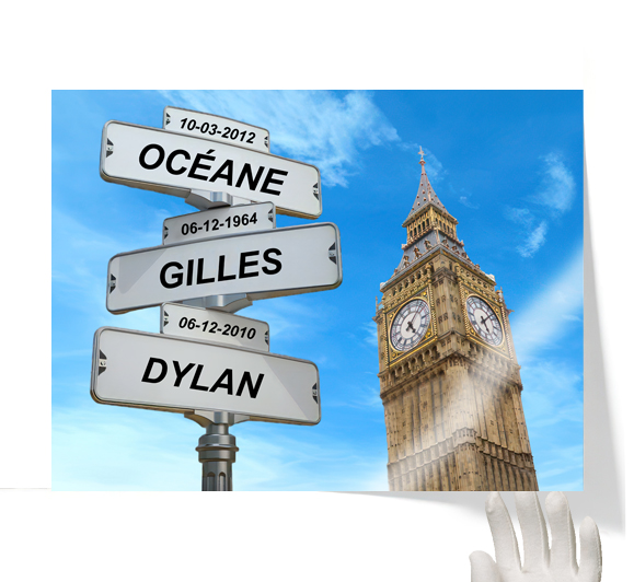 décoration murale, ville, circulation, préoms de famille, Big Ben, Tableau Personnalisé Panneau intersection Londres