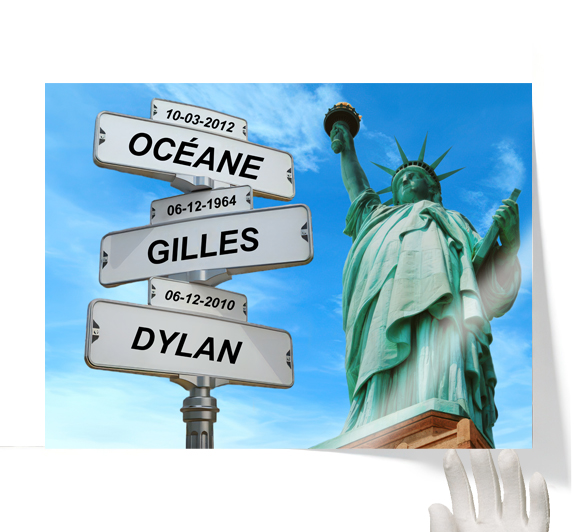 décoration murale, ville, circulation, préoms de famille, Statue de la Liberté, Tableau Personnalisé Panneau intersection New York