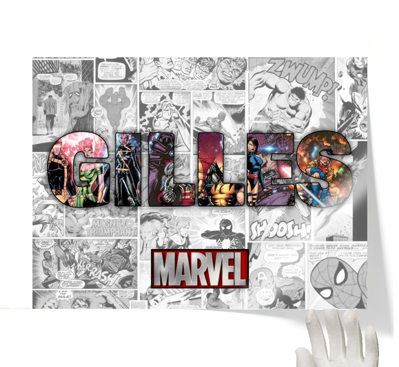 Marvel, comics, Movie, BD, tableau personnalisé prénoms, tableau style Marvel, décoration murale comics, tableau pop art Movie