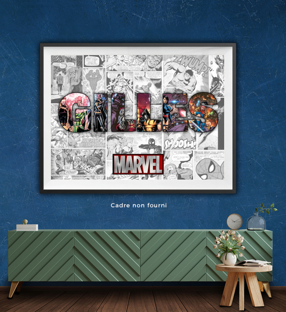 Le Tableau Personnalisé Prénoms Movie style Marvel est conçu pour les passionnés de visuels forts issus du cinéma et de la BD américaine. En tant que vendeur de tableaux, je propose ce modèle pour ceux qui souhaitent afficher une décoration murale affirmée et immédiatement reconnaissable. Le style Movie Marvel se distingue par des contrastes marqués, des effets visuels dynamiques et une mise en scène graphique inspirée des affiches de films. La personnalisation par prénoms transforme chaque toile en création unique, pensée pour refléter une identité personnelle. Chaque prénom est intégré avec précision afin de conserver une parfaite lisibilité. Le tableau s’intègre naturellement dans un salon moderne, un bureau ou une chambre dédiée aux loisirs. Le graphisme inspiré des comics apporte une intensité visuelle recherchée par les amateurs du genre.