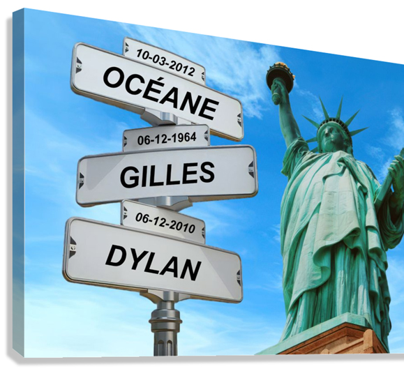 Les passionnés de New York apprécient ce tableau personnalisé. La ville est représentée par ses intersections. Les codes de la circulation donnent une structure claire. La décoration murale devient expressive. Les préoms de famille rendent l’œuvre unique. La référence à la Statue de la Liberté affirme le thème. Le tableau attire le regard. Il s’intègre à un intérieur contemporain. Le rendu reste cohérent. Cette création répond à une attente décorative précise.